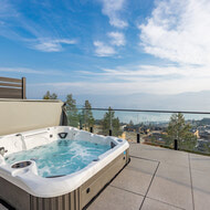 This luxurious custom home is situated in a beautiful lake view setting. The home is designed to take full advantage of the stunning views of Okanagan Lake, with vast windows and folding doors that open up to the outdoors. The main floor is open and airy, with spacious living and dining areas, and a gourmet kitchen with custom cabinets, quartz countertops, and panel-ready appliances. The master suite is a private oasis, with a large bedroom, a sitting area in front of a Juliette balcony, a massive walk-through ensuite with a steam shower, and a walk-in closet with a laundry room attached. The outdoor spaces are perfect for entertaining. Both the upper deck and lower patio can be fully enclosed by automatic screens and are equipped with infrared heaters and gas fire tables. This award-winning home is the perfect place to relax and enjoy the beauty of nature. |